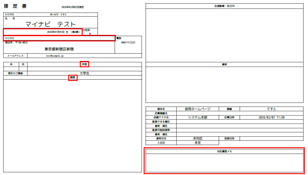 空欄が多く含まれた最大4ページの履歴書が出力されるケースがありました。