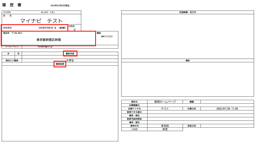 そのため、履歴書の「その他情報」欄に印字される自由作成項目に関しては、
