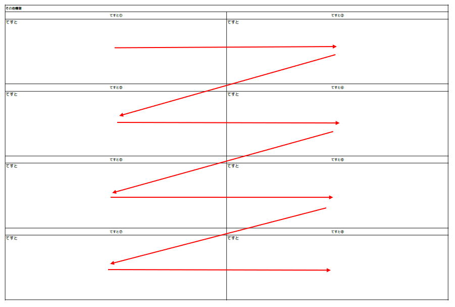 ■自由作成項目、媒体毎の入力項目について履歴書2ページ目以降は下記の仕様で印字されます。