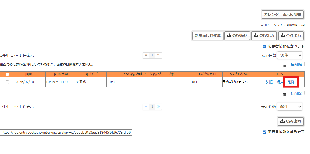 ◻︎面接枠を削除する際に、一部条件でエラー画面に遷移する事象を解消します。