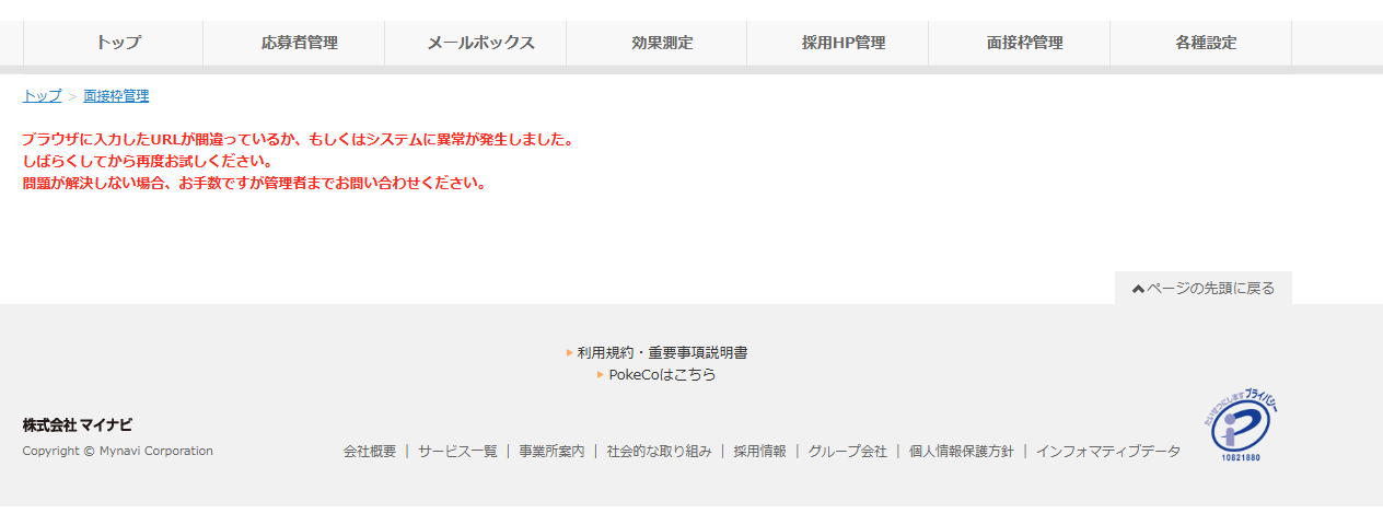 共通エラー画面に遷移せずに、面接枠管理画面内に遷移するように改修をいたします。