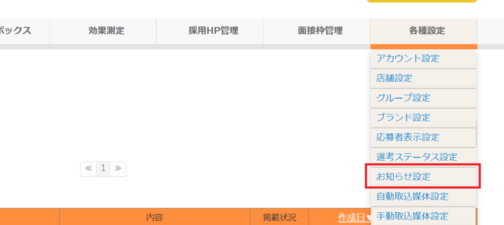 ◻︎1.トップページの各種設定>お知らせ設定からのお知らせ一覧画面へ進んでください。