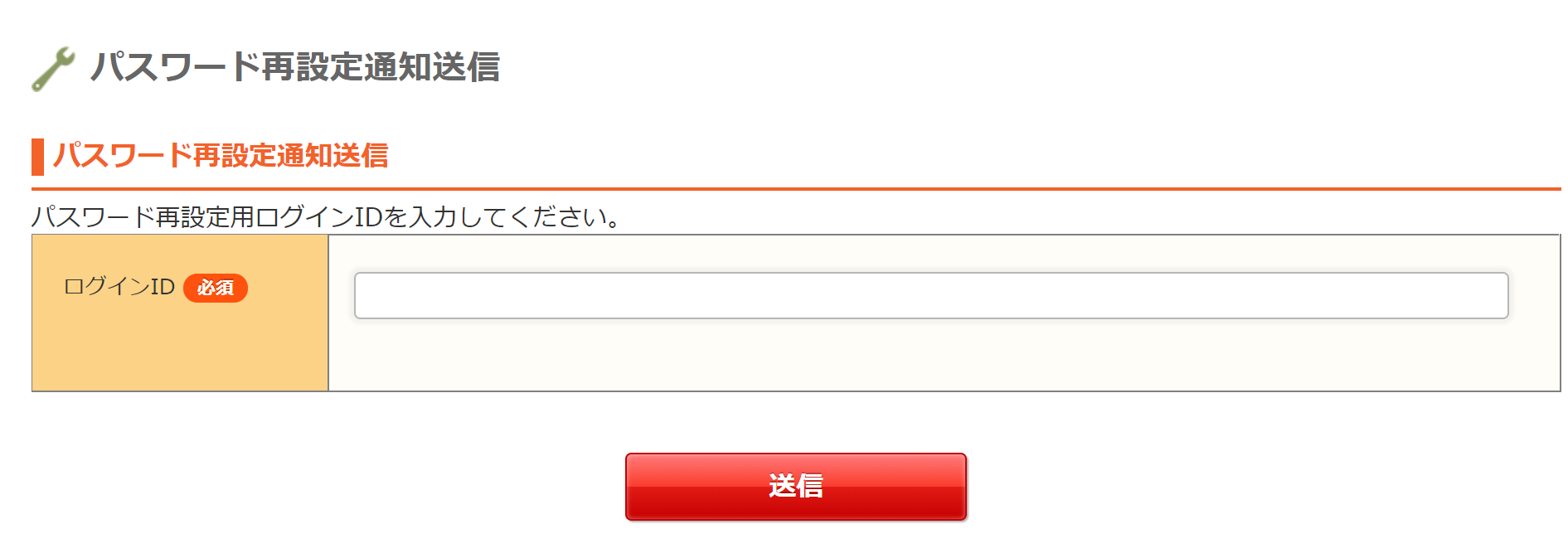 ■2.「パスワード再設定通知送信」画面でログインID(アカウントID)を入力します。