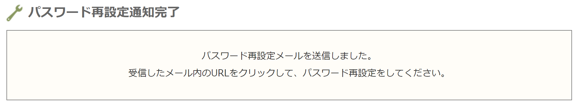 | 【備考】 ※パスワードには半角英字、数字、記号の3種類の文字が必要です。 8~15文字で入力してください。 ※クリックしてから1時間以内に、再設定を行ってください。 |